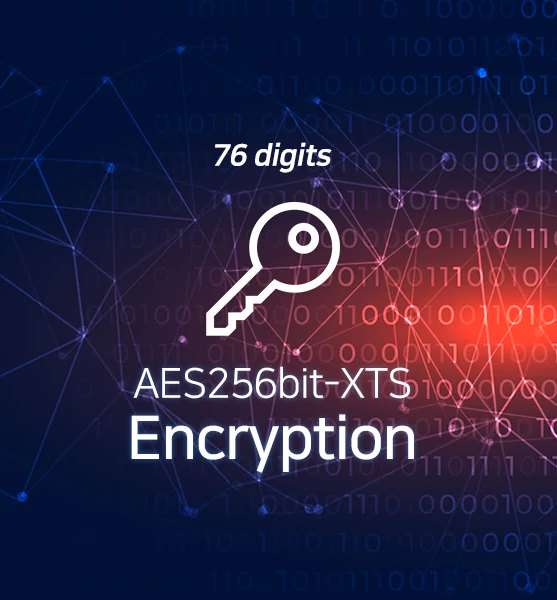 AES 256-bit XTS 하드웨어 암호화로 철벽 보안을 경험하세요. 고유한 38+38 자리 이중 암호와 랜덤키패드로 데이터를 완벽하게 보호하며