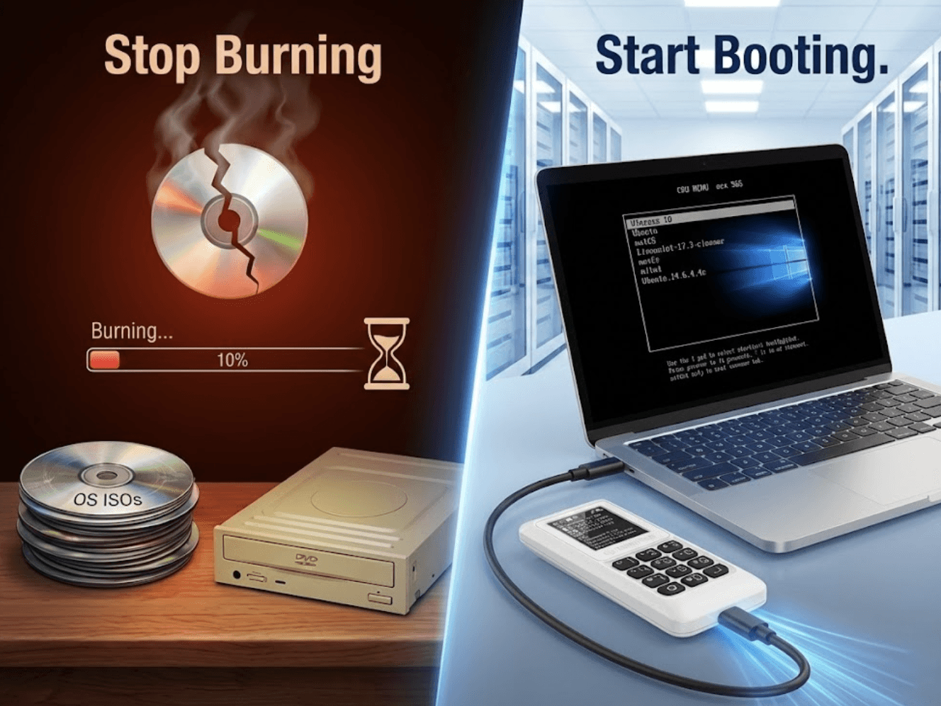 ISO를 USB 드라이브에 굽는 번거롭고 시간 소모적인 과정은 잊으세요. IODD MINI PRO로 파일을 복사하기만 하면 바로 준비 완료입니다. 레거시 BIOS부터 최신 UEFI까지, 100% 하드웨어 수준 에뮬레이션 guarantees 완벽한 호환성과 어떤 PC에서도 비할 데 없는 안정성을 보장합니다. 설정 시간을 몇 초로 단축하고 절대적인 확신으로 부팅하세요