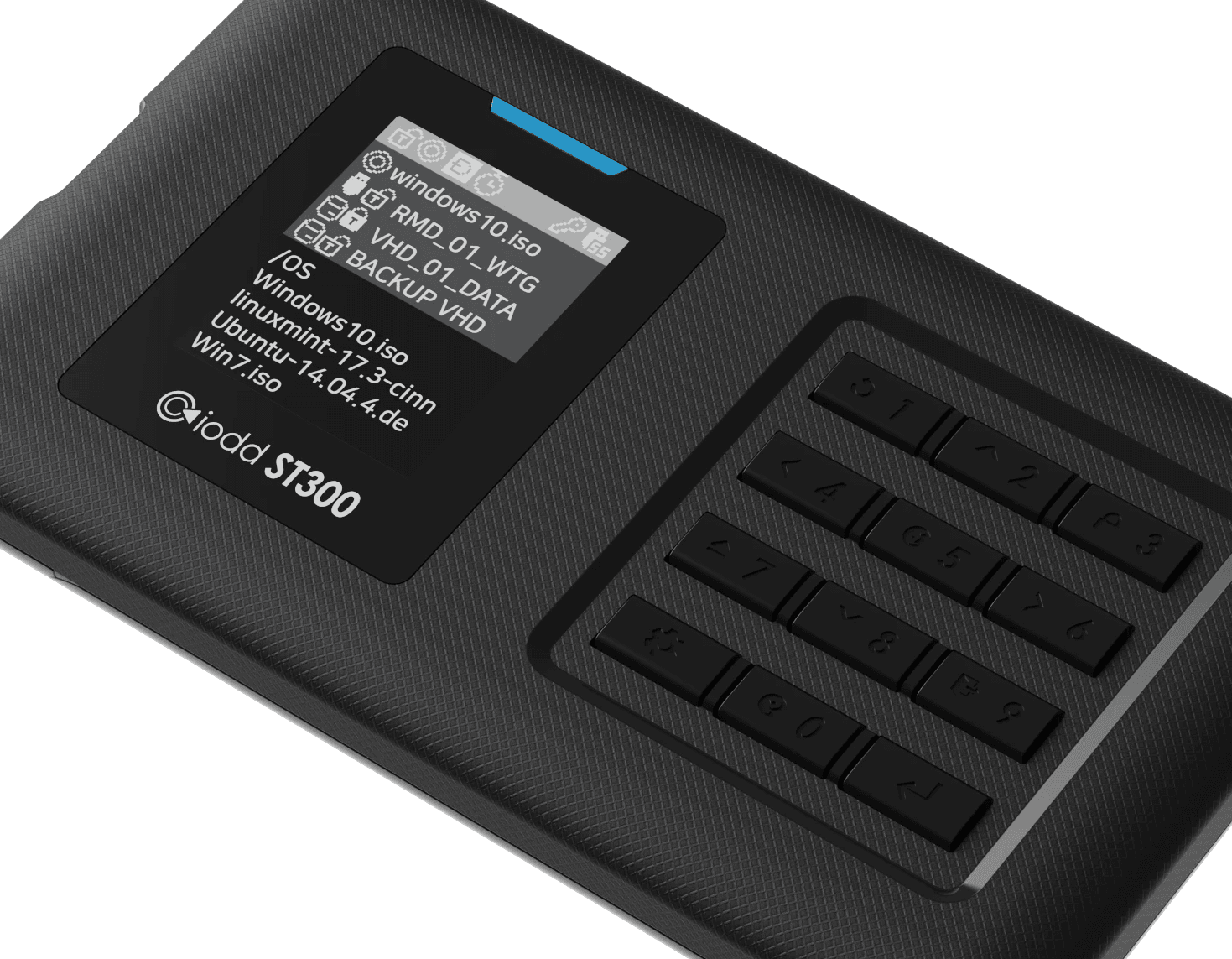 12개의 정밀한 택타일 키로 기기를 완벽하게 제어하세요. 연결 시 지정된 시작 키를 누르면 맞춤 기능이 원활하게 실행됩니다. 메뉴 탐색 없이 쓰기 보호 모드를 실행하여 데이터를 즉시 보호하세요.